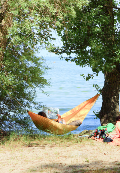 Die Müritz ist der größte deutsche Binnensee mit 117 km². Auf den Campingplätzen befinden sich eine Katamaran- und Surfschule (C15) sowie