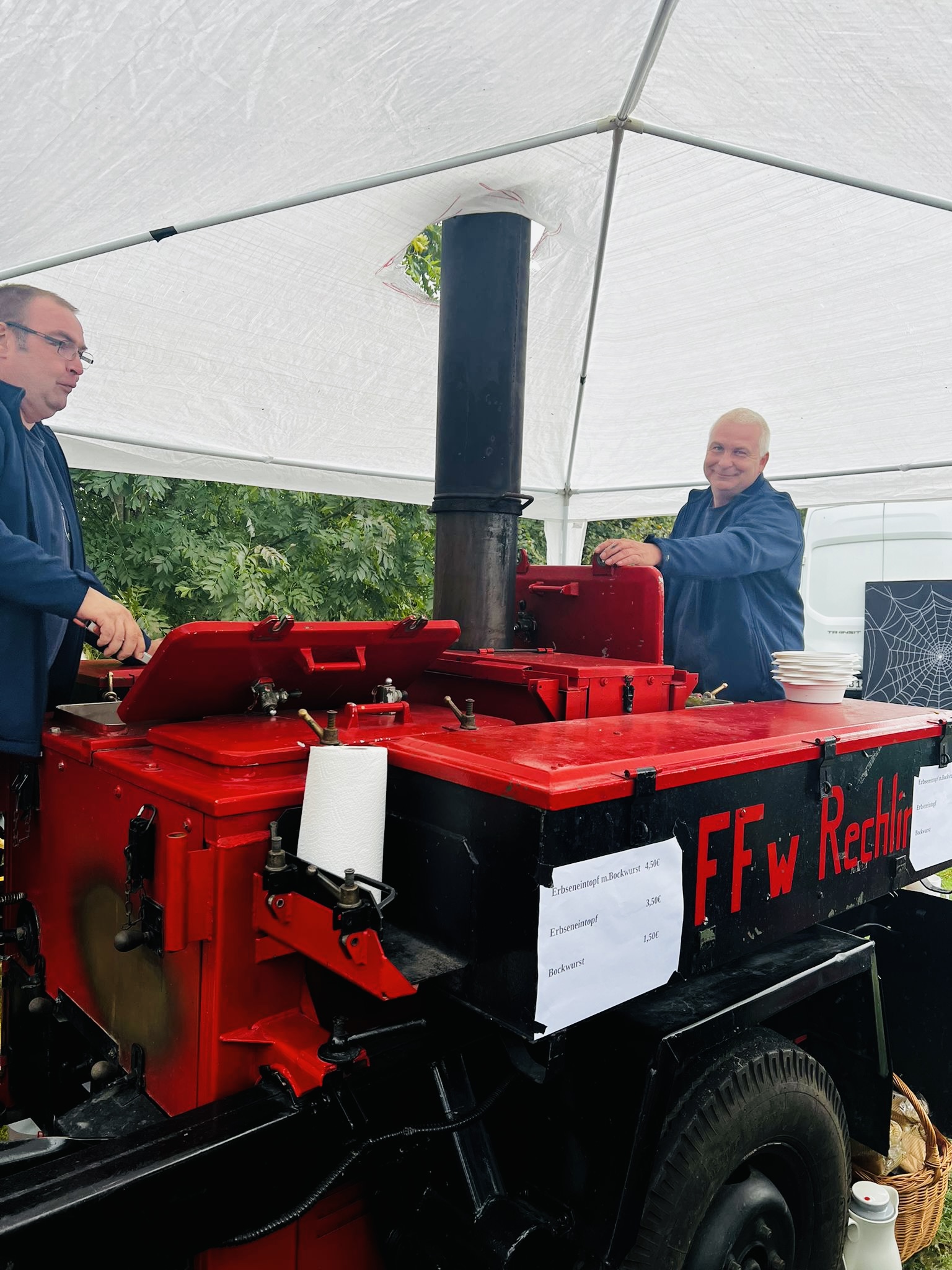 Für das leibliche Wohl sorgt die Rechliner Feuerwehr mit leckerem Erbseneintopf aus der Gulaschkanone. Warme und kalte Getränke halten wir natürlich auch bereit.